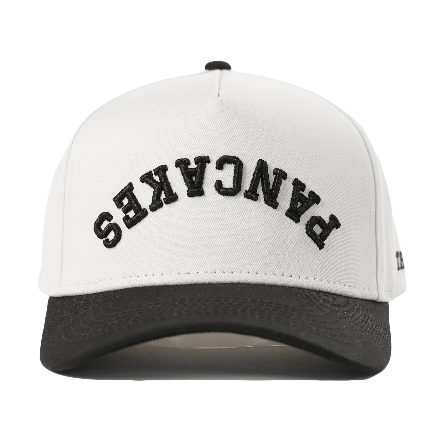 Upside-down “PANCAKES” design with puff embroidery