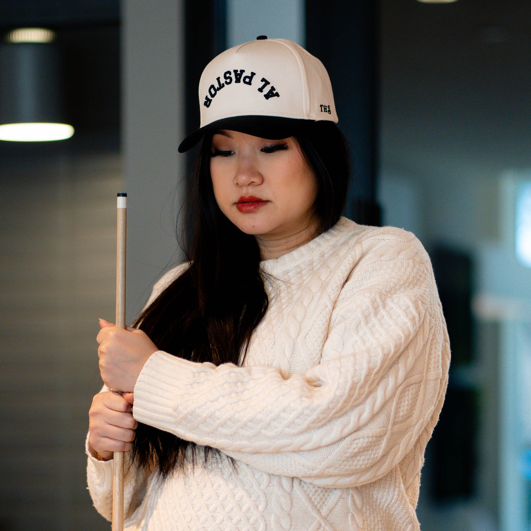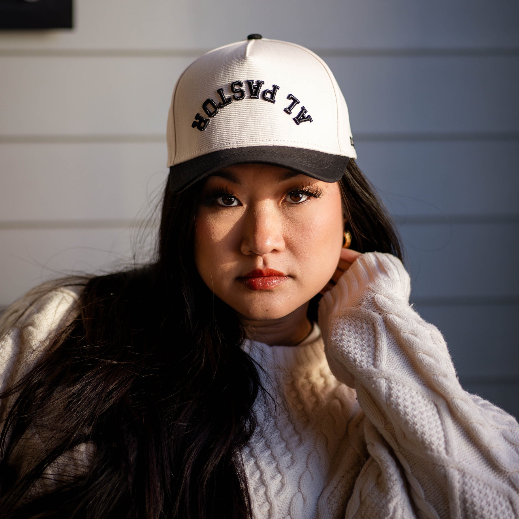 Upside-down “AL PASTOR” design with puff embroidery